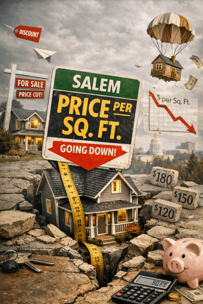 The latest market snapshot from SalemHousingWatch.com reveals a notable shift in Salem’s housing market: price per square foot is trending downward across several neighborhoods. This decline suggests that buyers are becoming less urgent, while sellers are increasingly offering concessions to close deals.